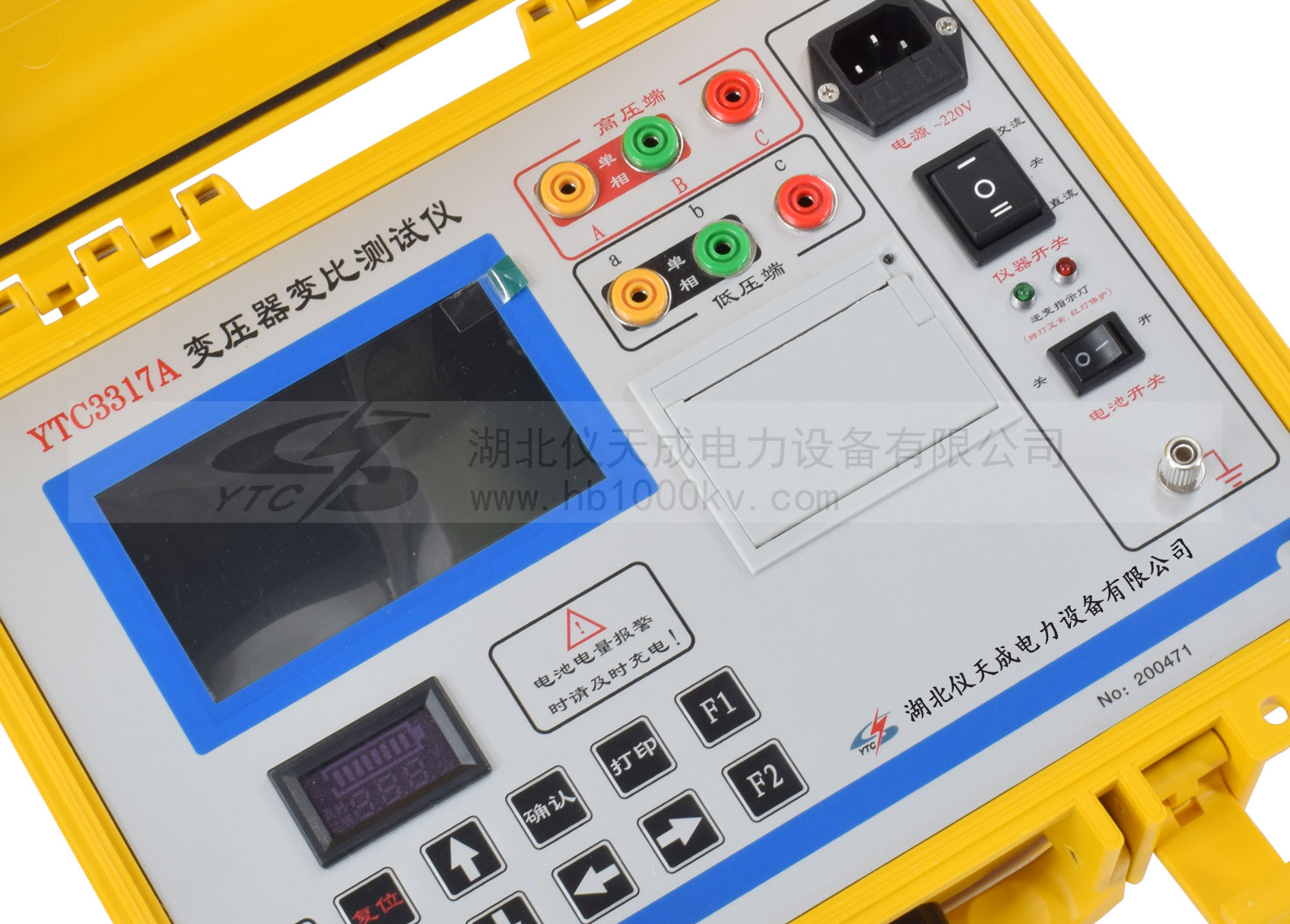 YTC3317A變壓器變比測試儀主要進行匝數比或電壓比測試,克服了傳統變比電橋測試的缺點。屏幕采用一次完成三相變比測試,測試速度快,準確度高。大大節省了現場測試時間,為客戶的試驗帶來了很高的效率。
